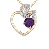 Amazon.com Collection S3AEYW13FW, Celebrate her birthday with the beauty and elegance displayed on the 18k Yellow Gold Plated Sterling Silver Genuine Africa Amethyst and Diamond-Accented Open Heart with Wrap Pendant Necklace. Uniquely linked to an 18-inch cable chain by a diamond embellished ribbon wrapping is an open-heart pendant. The pendant is accented with a round natural amethyst stone, prong-set to showcase its bold purple hue. This timeless pendant can be worn from day to evening. ...