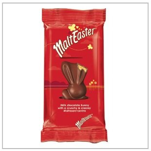 Malteser Easter Bunny, Malteser Bunny Bar 29g. A very small, cheap milk chcoolate bar with a crisp, malt centre. The Malteser Bunny Bar is an excellent small Easter gift that provides a simply irresistible chocolate taste experience. Perfect for a small snack food.